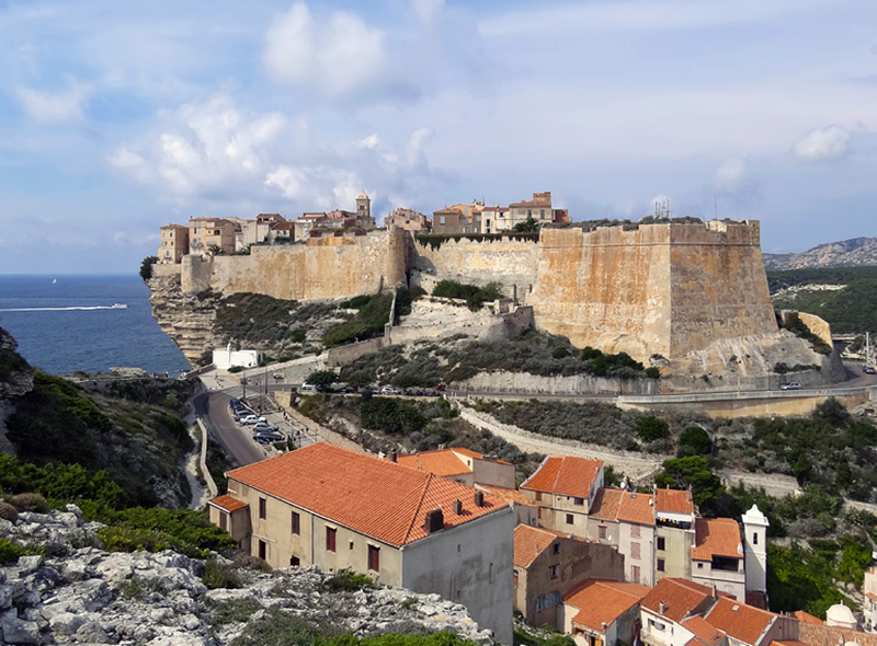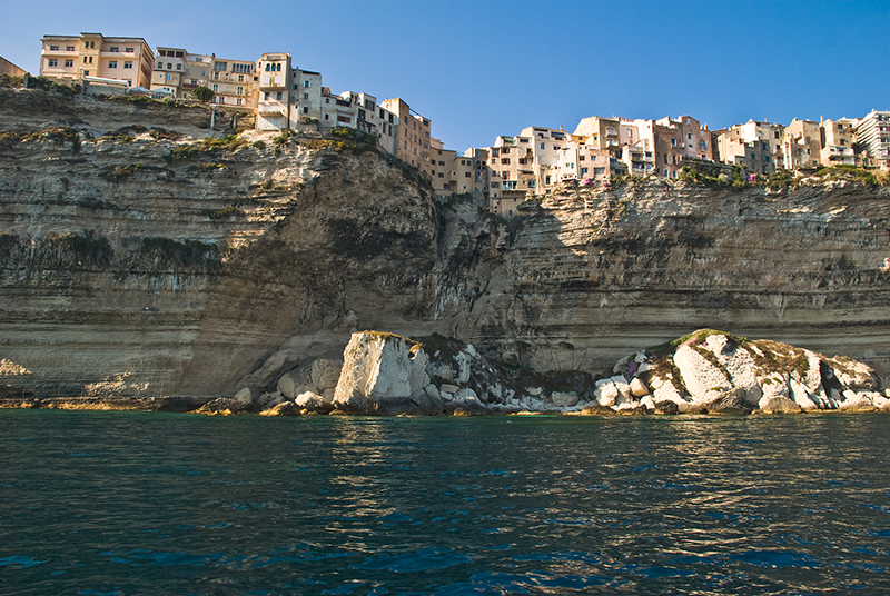 Древний форт Бонифачо, охраняющий подступы к Корсике с юга, защищен от всех ветров высокими, почти отвесными утесами. Расположенный высоко на скале, он, кажется, парит над миром, цепляя башнями облака. Снизу стены его производят ощущение крайней степени неприступности. Согласно легенде, сюда заходил Одиссей, и уже в те далекие времена Бонифачо выглядел точь-в-точь, как его может застать сегодня современный путешественник. За тысячелетия волны подточили скалы, стены форта нависают прямо над морем. Сам городок похож на лабиринт, где улицы переходят в лестницы, а кафе балконами повисают над морем. Вид потрясающий!