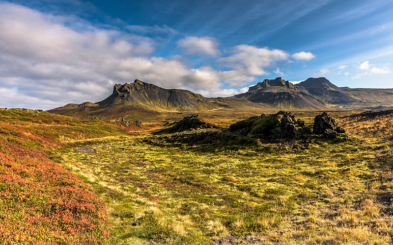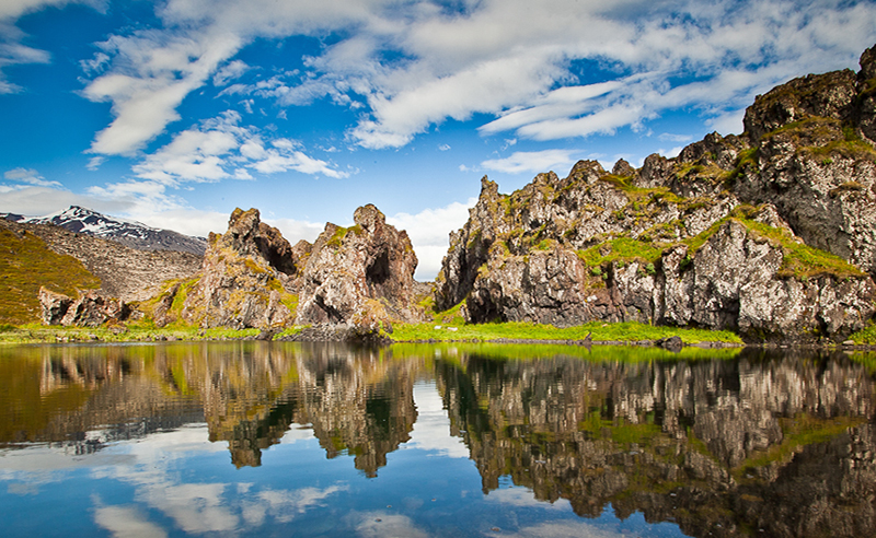 Главной достопримечательностью является Национальный парк Снайфедльсйёкюдль с величественными ледниками и невероятной красоты пейзажами лавовых полей, водопадов, пещер, кальдер и базальтовых скал. Эта территория стала источником вдохновения многих саг викингов, а в более близкие к нам времена - "Путешествия к центру Земли" Жюля Верна. Полуостров Снайфельснес отличается столь разнообразными ландшафтами, что его вполне можно признать Исландией в миниатюре.