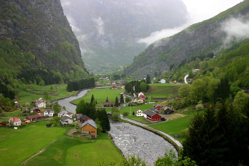 Маленький норвежский городок Флом, спрятанный среди живописных горных вершин, расположен в долине Фломсдален, в районе Эурландсфьорда и Согнефьорда. Это одно из самых малонаселённых мест в Норвегии. Здесь проживают всего около трёх сотен человек. Слово «флом» означает небольшой луг, окруженный крутыми склонами. Долина Флом была образована в течение миллионов лет несколькими ледниками, ныне представляющими собой величественные долины.