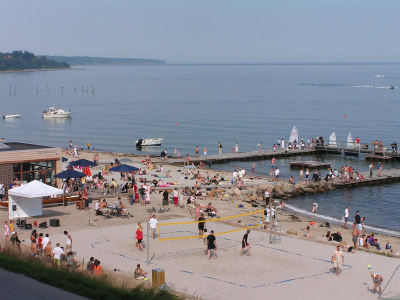 Главный городской пляж Фредерисии расположен прямо в конце главной улицы города, в 500 метрах от его пешеходного центра. Здесь есть вся необходимая инфраструктура.